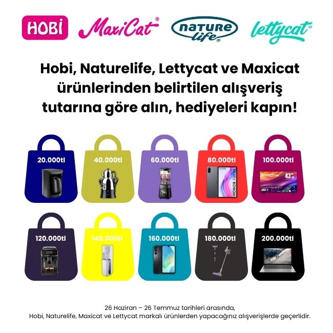 - Kampanya, Hobi, Naturelife, Maxicat ve Lettycat markalı ürünlerden yapılacak alışverişlerde geçerlidir.