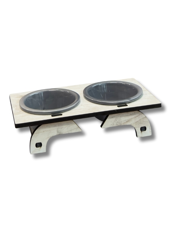 Hobi Ahşap Standlı İkili Seramik Mama ve Su Kabı, kedi ve küçük ırk köpeklerin daha konforlu beslenmesi için ergonomik yükseklikte tasarlanmıştır. Dayanıklı ahşap stand yapısı ve hijyenik seramik kapları sayesinde hem sağlıklı hem de estetik bir kullanım sunar. Yerden yüksek tasarımı, eğilmeden beslenmeye yardımcı olarak günlük kullanımda konfor sağlar.