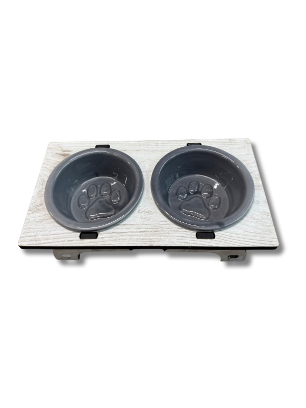 Hobi Ahşap Standlı İkili Seramik Mama ve Su Kabı