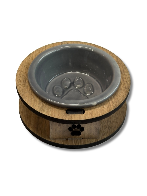 Hobi Ahşap Standlı Tekli Seramik Mama ve Su Kabı