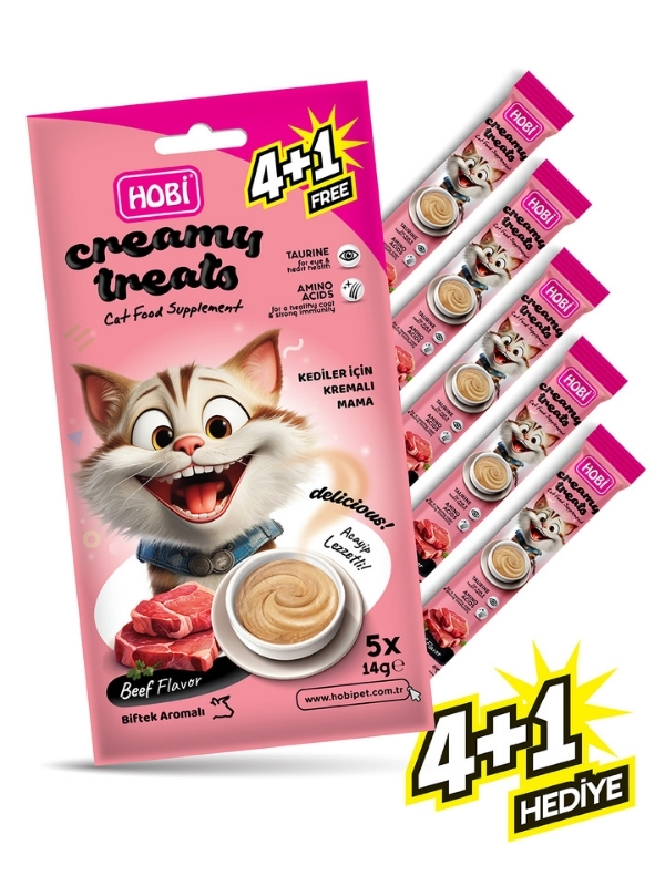 Hobi Biftek Aromalı Krema Kedi Ödül Maması 14 gr x 5 Adet