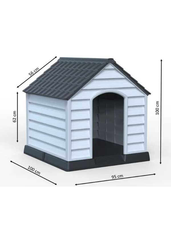 Dış mekân kullanımına uygun olarak tasarlanan bu büyük boy plastik köpek kulübesi, geniş iç hacmi ve sağlam yapısıyla orta ve büyük ırk köpekler için ideal bir yaşam alanı sunar. Dayanıklı malzemesi sayesinde uzun ömürlü kullanım sağlarken, hava koşullarına karşı koruma sunar.