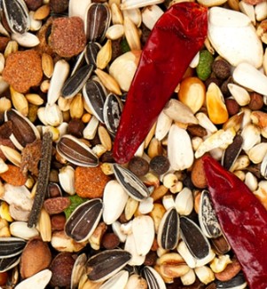 Çizgili ayçiçeği tohumu, beyaz ayçiçeği tohumu, aspir, yulaf, mısır, çeltik pirinç, buğday, karabuğday, arpa, soyulmuş fıstık, kabak çekirdekleri, dari, çam fıstığı, keçiboynuzu küpleri, kanarya tohumu, kenevir, beyaz darı, milo, kahvaltılık buğday, patlamış mısır, kuşburnu, kırmızı biber, maksi VAM peletleri, istiridye kabuğu