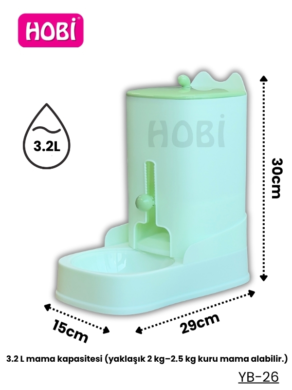 Hobi YB-26 Otomatik Rezervli Kedi & Köpek Mama Kabı 3.2 L Tekli