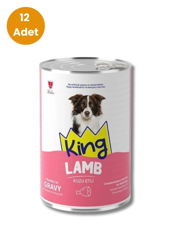 King Sos İçerisinde Et Parçacıklı Kuzu Etli Köpek Konservesi 400 gr (12 Adet)