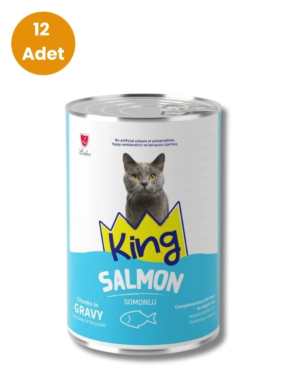 King Sos İçerisinde Et Parçacıklı Somonlu Kedi Konservesi 400 gr (12 Adet)