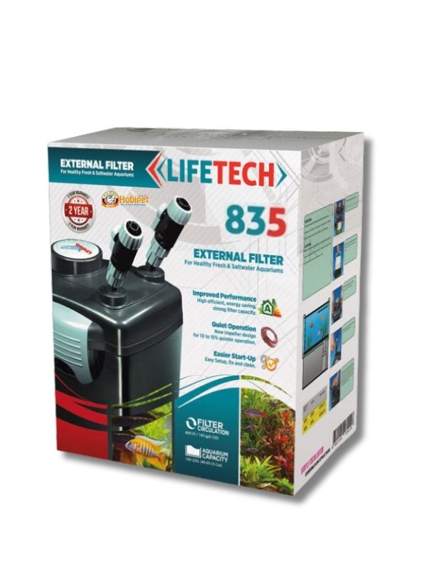 LifeTech 835 Dış Filtre, orta ve büyük boy tatlı su, deniz ve bitkili akvaryumlar için yüksek performanslı filtrasyon çözümü sunar. Saatte 1000 litre filtrasyon kapasitesi ve 22W motor gücü sayesinde akvaryum suyunun mekanik, kimyasal ve biyolojik olarak etkin şekilde temizlenmesine yardımcı olur. Seramik mil yapısı, metal millere göre daha geç ısınarak daha uzun kullanım ömrü sağlar.