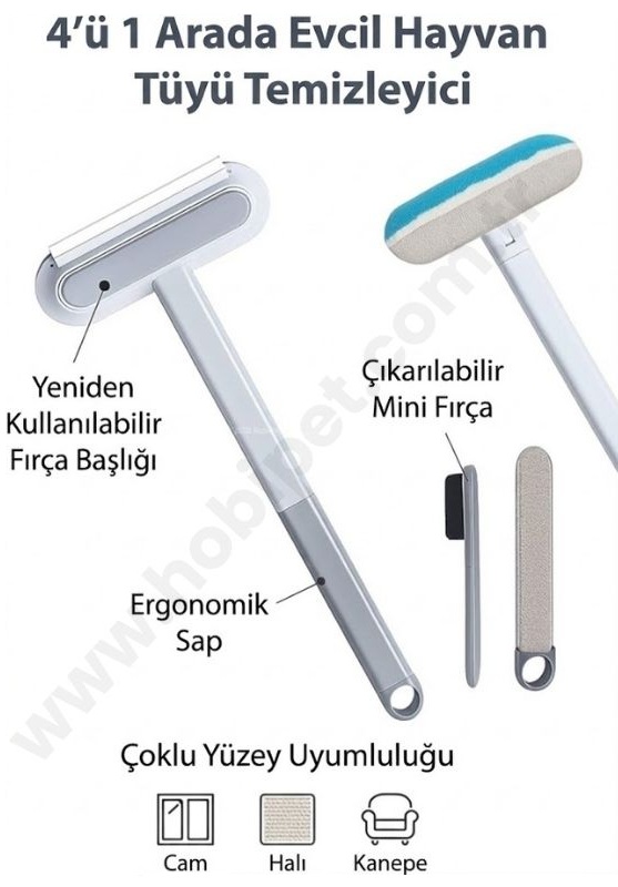 Evcil hayvan tüylerini hızlı ve zahmetsiz bir şekilde temizlemek için geliştirilmiş çok fonksiyonlu bir aparattır. Yeniden kullanılabilir fırça başlığı geniş yüzeylerde yüksek performans sağlarken, çıkarılabilir mini fırça dar alanlarda detaylı temizlik sunar. Ergonomik sapı sayesinde konforlu kullanım sağlar. Cam, halı, kanepe ve benzeri yüzeylerle uyumlu çalışır.