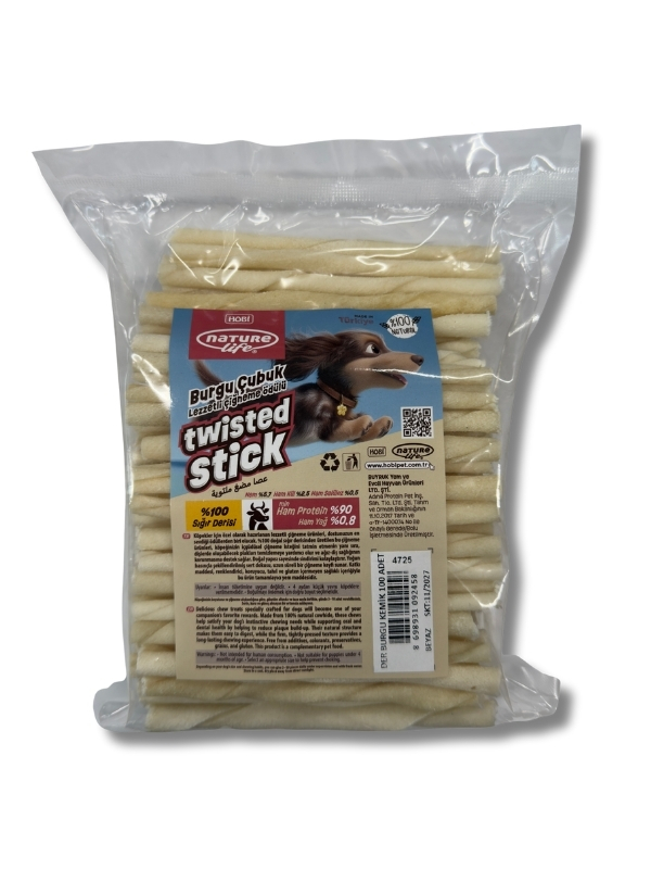 Doğal sığır derisinden üretilmiş Naturelife Burgu Çubuk, köpeklerin çiğneme içgüdüsünü sağlıklı şekilde karşılayan lezzetli ve dayanıklı bir atıştırmalıktır. Diş temizliğine katkı sağlar ve uzun süre çiğneme keyfi sunar.