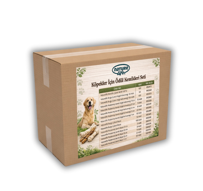 Naturelife Köpek Ödül Kemikleri Seti, farklı boyut, renk ve formda toplam 15 çeşit üründen oluşan zengin içeriğiyle pet shoplar için ideal bir stok ve satış çözümü sunar. Munchy çubuklar, burgu çubuklar ve preslenmiş kemikler; küçük, orta ve büyük ırk köpeklerin çiğneme ihtiyacına uygun şekilde hazırlanmıştır.