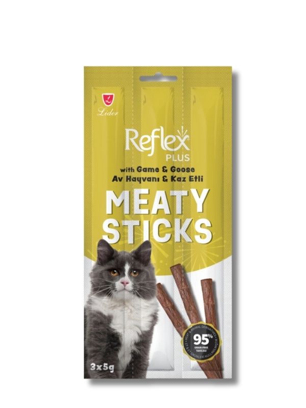 Reflex Plus Av Hayvanlı ve Kaz Etli Tahılsız Kedi Ödül Çubuğu 5 gr x 3 Adet