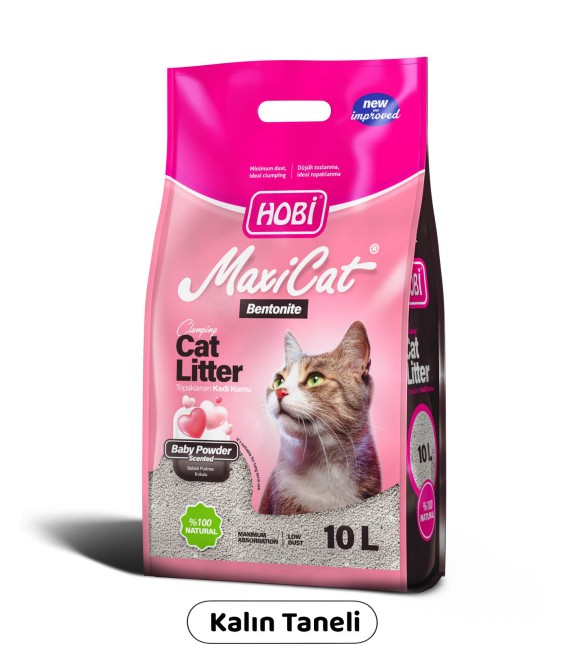 Hobi Maxicat Bebek Pudralı Kalın Taneli Bentonit Kedi Kumu 10 Litre
